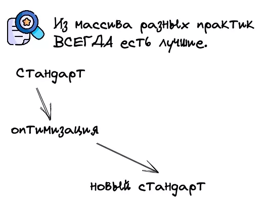 Тут важно сделать небольшой Акцент: установить стандарт это не значит отлить процесс в границе и забыть про него не века. Разработать и установить стандарт значит собрать лучший существующий на данный момент подход к реализации процесса и начать его использовать. Появляется что-то лучше? Отлично улучшайте стандарт!